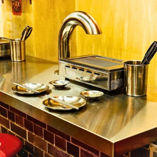 お席には焼き台完備。スタッフが目の前で焼き上げる焼肉ショー。